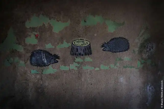 Особенность оформления комнат – настенные «трафаретки» с различными сюжетами, чаще анималистической тематики. Например, ёжики.