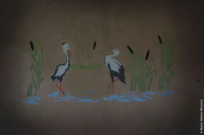 Башню (внутри которой оказалась водонапорная установка) украшает вот такой флюгер. «Аист на крыше, мир на Земле», как пелось в одной старой песне.