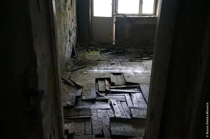 А некоторые комнаты и совсем в ужасном состоянии. Заходить туда не хочется. Почему-то хуже сохранились комнаты в правом крыле здания.