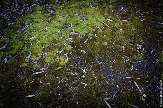 Яркий мох напомнил о Припяти. Я поймал себя на том, что стараюсь на него не наступать (привычка из Припяти, где мох радиоактивен).