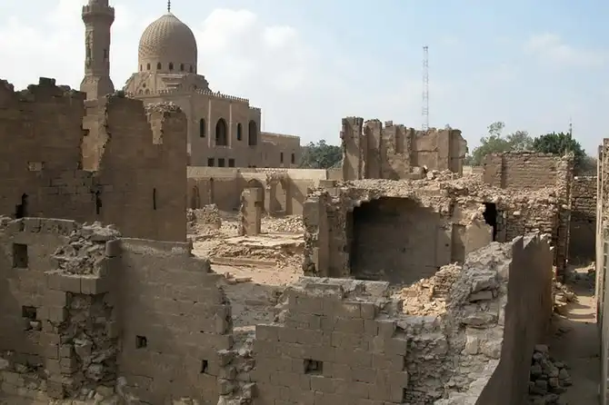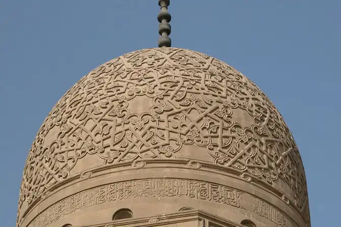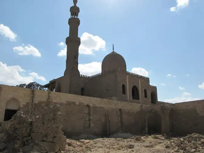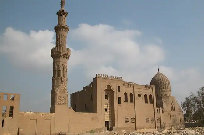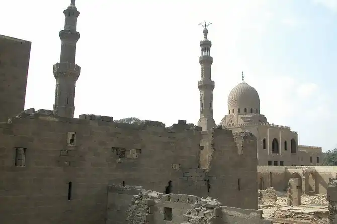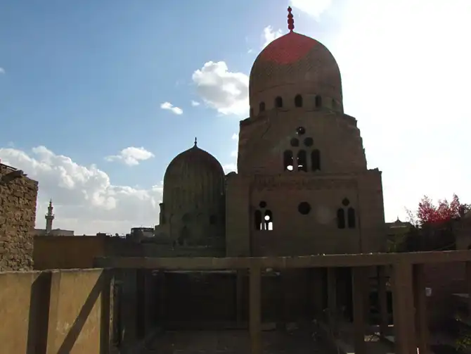 Мавзолей, минарет и ханака комплекса Ал-Султания (1350-1360 год), мамлюки «бахри» – на Южном кладбище выполнен в персидском стиле и возможно принадлежит матери султана Хасана, построившего самую большую мечеть в городе.
