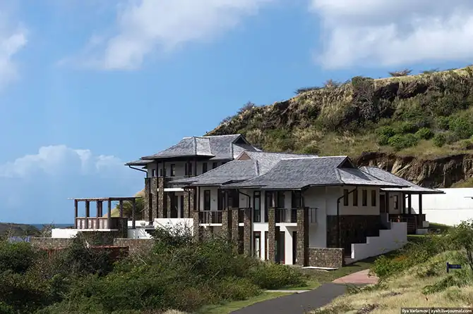 Вот такой домик, 500 кв метров, стоит 4 500 000 долларов с участком. Покупают его по частям, обычно 10 собственников. Дальше у каждого собственника есть 5 недель в году, когда он может распоряжаться домом (жить или сдавать его). Все 10 получают гражданство.