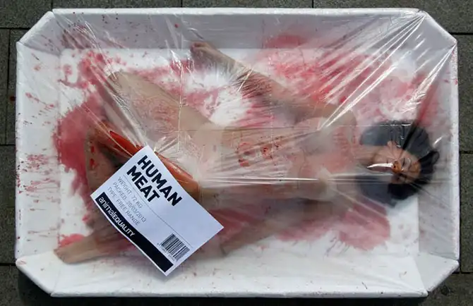 “День без мяса” – акция защитников животных в центре Барселоны.