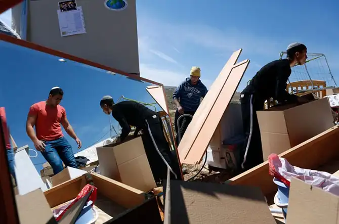 Израильтяне разбирают свои вещи после сноса незаконного поселения.