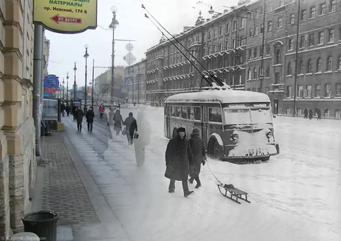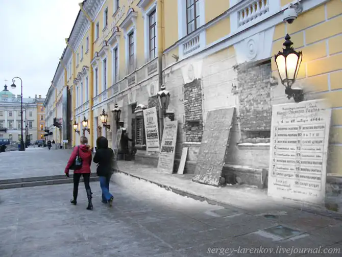 18 января 1943 года в результате наступательной операции “Искра” была прорвана блокада Ленинграда. В честь знаменательной даты предлагаем вашему вниманию серию коллажей петербуржца Сергея Ларенкова. На каждом снимке максимально точно совмещены кадры одного и того же места, но сделанные в разное время: в годы блокады Ленинграда – и сейчас, в начале двадцать первого века.