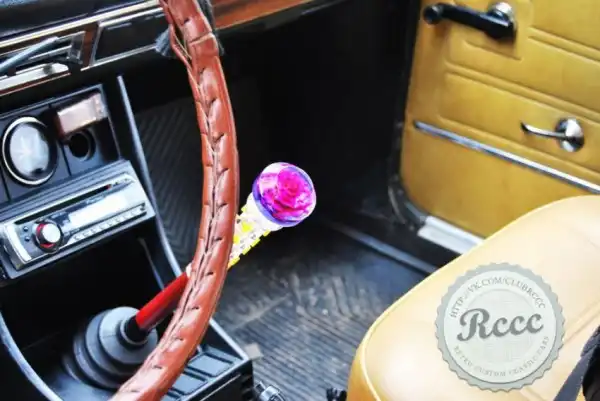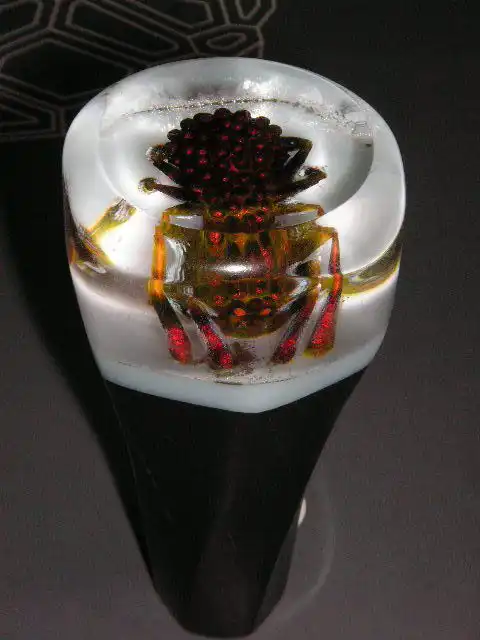 В СССР какое-то время было "модным" на рычаг переключения коробки передач ставить ручки из залитыми в прозрачный материал розочками.