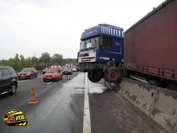 С другой стороны часто автомобили, водители которых посчитали себя выше не только ПДД, но и законов физики, с легкостью перелетают через отбойники. И даже многотонные фуры как ласточки отрываются от земли.