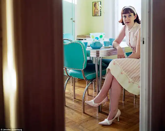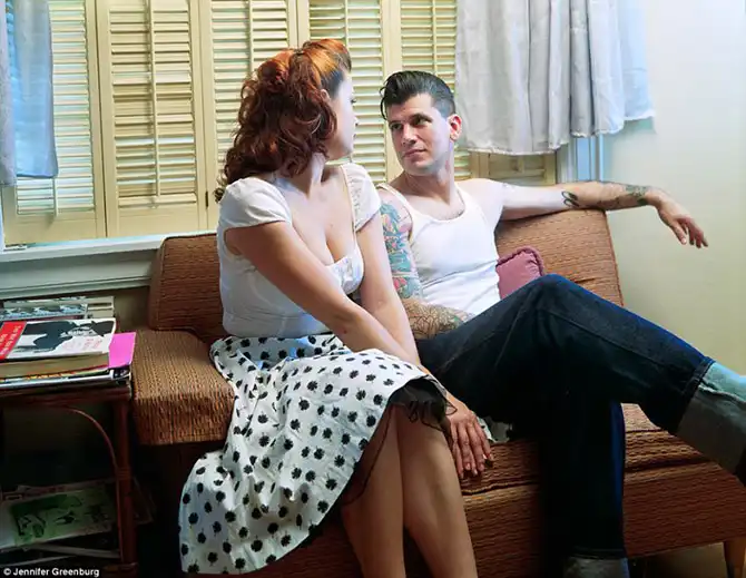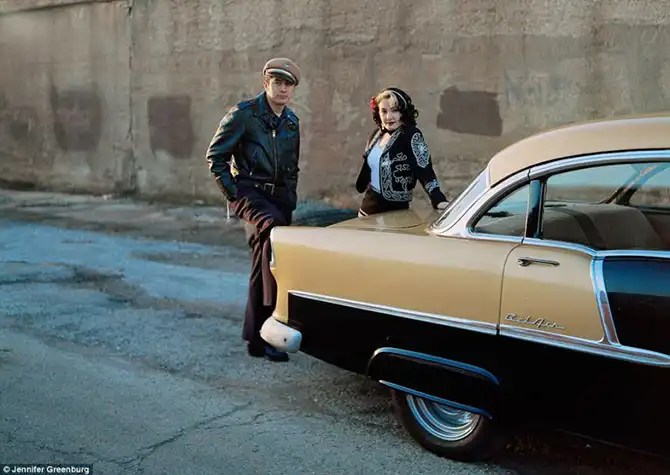 Герои фотографий Дженнифер Гринберг по-прежнему живут будто в 50-х. Помощница профессора из Университета Индианы фотографировала членов американского сообщества рокабилли в течение более 10 лет: люди не только одеваются, как в пятидесятые, но и водят старые кадиллаки и украшают свои дома предметами интерьера, похожими на декорации из сериала «Безумцы».