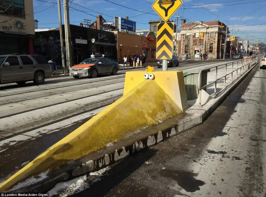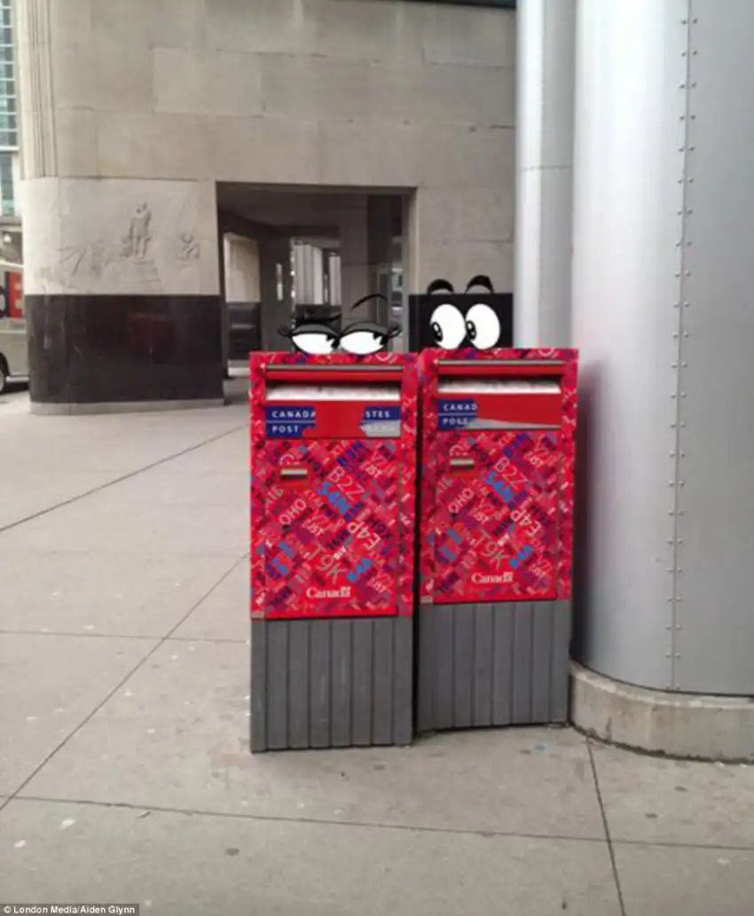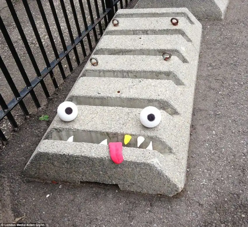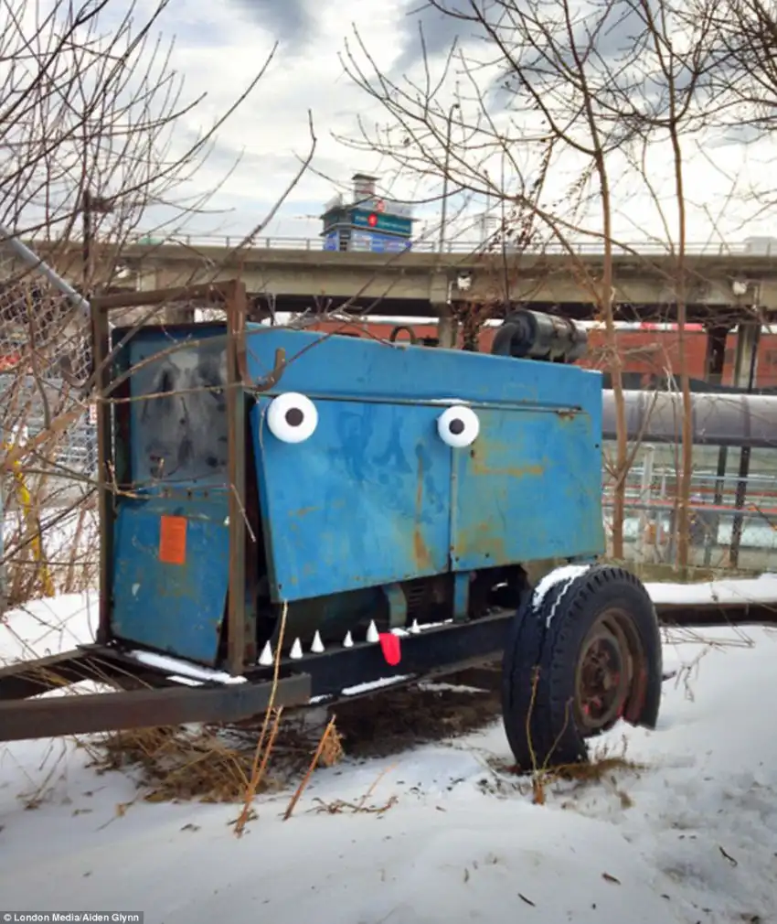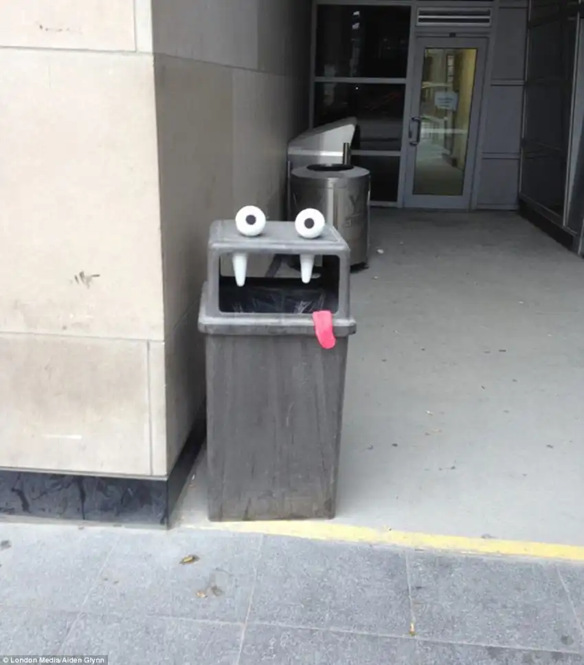 Монстры повсюду!Надо только знать, куда смотреть.По крайней мере так думает канадец Эйден Глинн. 30-летний мужчина несложными способами создает "монстров" на улицах Торонто. Обычные мусорные баки превращаются в создания из другого мира, а у скамейки в городском парке вдруг появляются глаза и зубы. "Я занимаюсь этим, так как мне кажется, что это весело, да и люди получают удовольствие от увиденного", -говорит Эйден.