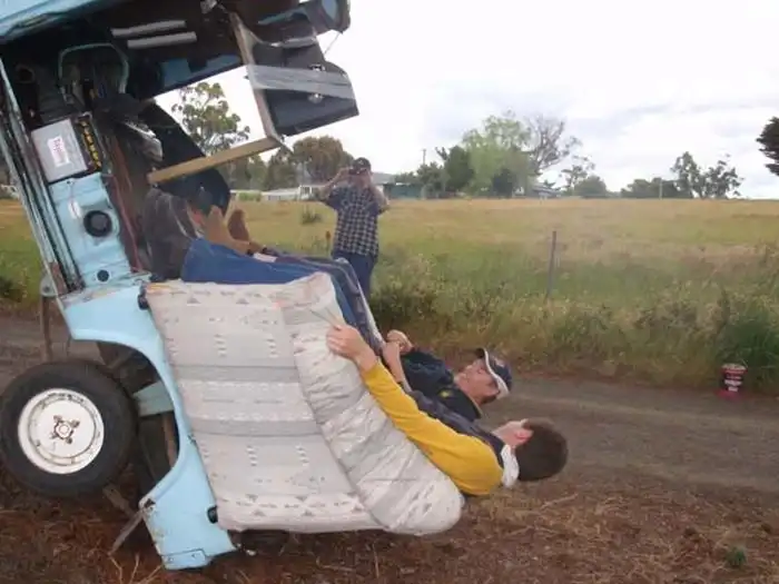 Все ведь мечтали в тёплые деньки отправиться на своей яхте с друзьями отдыхать? Но, как правило, всё упирается в отсутствие яхты. Давайте мы вам поможем! Итак, для создания собственной яхты нам понадобится - старый грузовичок, старый диван, старая лодка и компания самых лучших друзей.