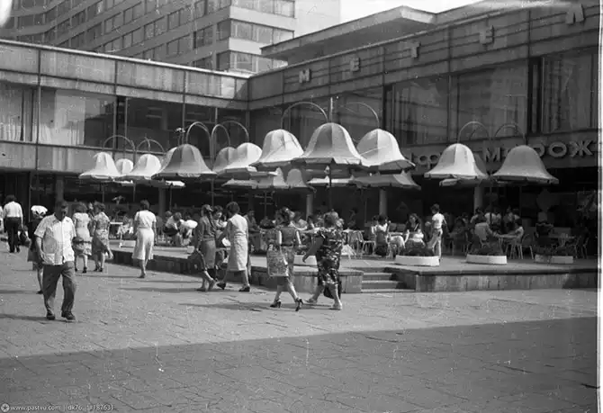 Кафе на Новом Арбате начало 80х. Хорошие были зонтики раньше.