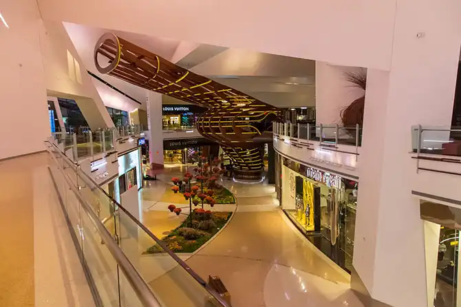 Впереди – торговый центр. Цены, там, кстати, несколько более демократичны, чем в более пафосных Crystals.