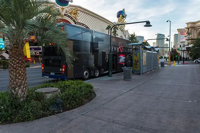 По Стрипу и далее в Дантаун ездит двухэтажный автобус «Двойка». Этот вот идет из Даунтауна. Проезд стоит 6 баксов с носа за два часа или восемь баксов – за 24 часа. Народ, понятно, предпочитает покупать билет на сутки.