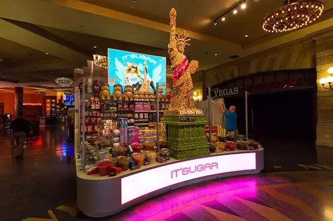 А стоит зайти в отель возле этой типа статуи Свободы – и видишь другую статую. Уже из конфеток.