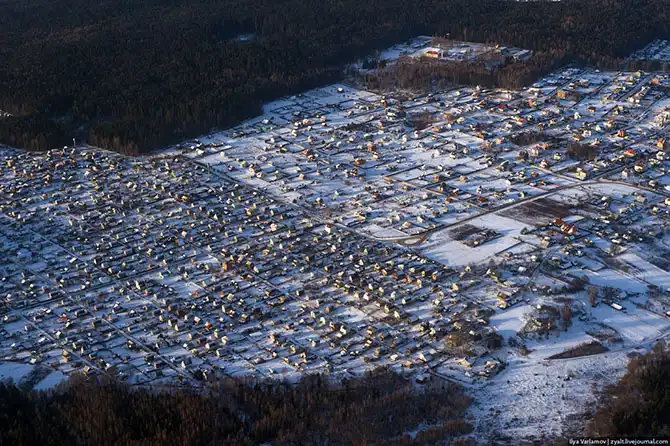 Или вот на окраинах. Обратите внимание, здесь нет заборов! Очень хорошо. У нас почему-то принято каждый клочок зембли огораживать бесконечными желто-зелеными заборами.