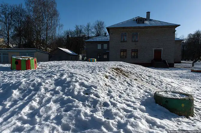 Еще в Минске много бомбоубежищ. Это, наверное, хорошо. Вот в детском садике вентшахты от бомбоубежища так красиво покрасили.
