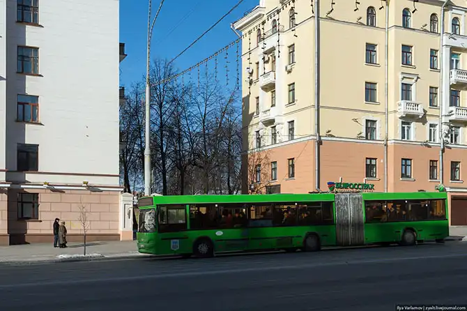 Самое главное – чисто. В рождения каждому минчанину внушают, что он живет в самом чистом городе на свете. Местами город действительно стерильный. Но не как Сингапур. У Минска своя особая, казарменная стерильность. Особенно чисто в плане визуального мусора. После Москвы и других городов Минск прямо по-европейски опрятный. Здесь нет проводов, кондиционеров и спутниковых тарелок. Очень мало рекламы и все довольно аккуратно. Практически отсутствует самострой. Город видно. Минск – это вылизанный город с советских открыток.
