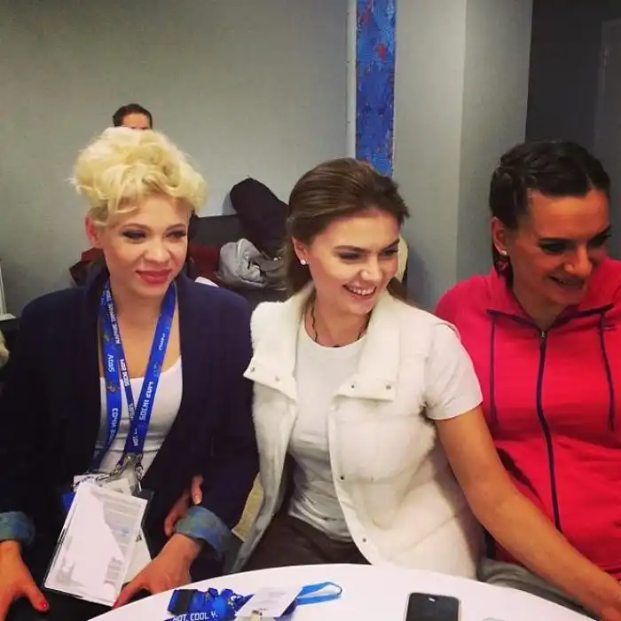 И Алина Кабаева, которая, вопреки слухам, так и не зажгла Олимпийский огонь, хотя была очень близка. Вот она, сидит рядом с Еленой Исинбаевой, а не с кем все подумали.