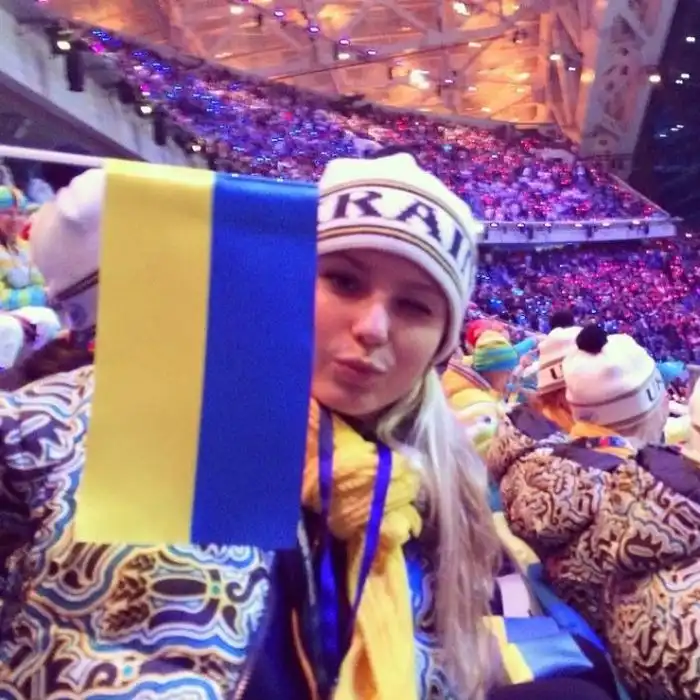 Олимпийцы занимают свои места на трибунах. Юлия Лаврентьева, фигуристка из Украины.