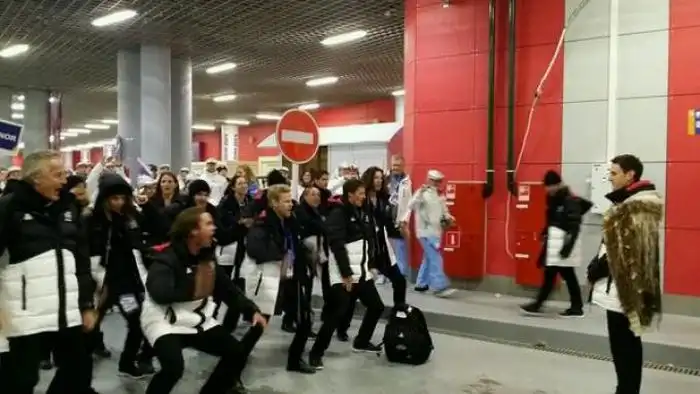 Новозеландцы делают «Haka» перед своим знаменосцем. К сожалению, мы не имеем ни малейшего понятия, что это такое…