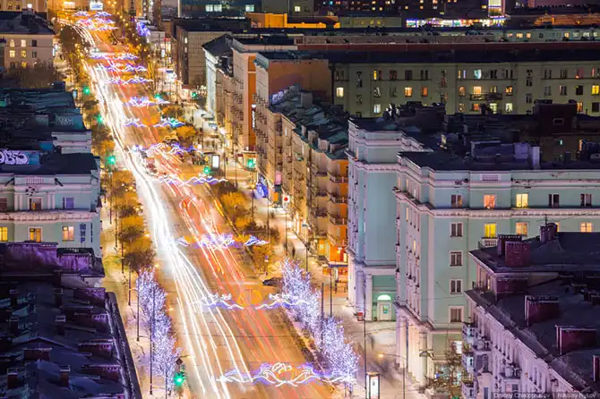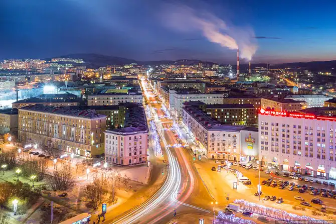 Ночная прогулка по самому крупному промышленному городу Заполярья
