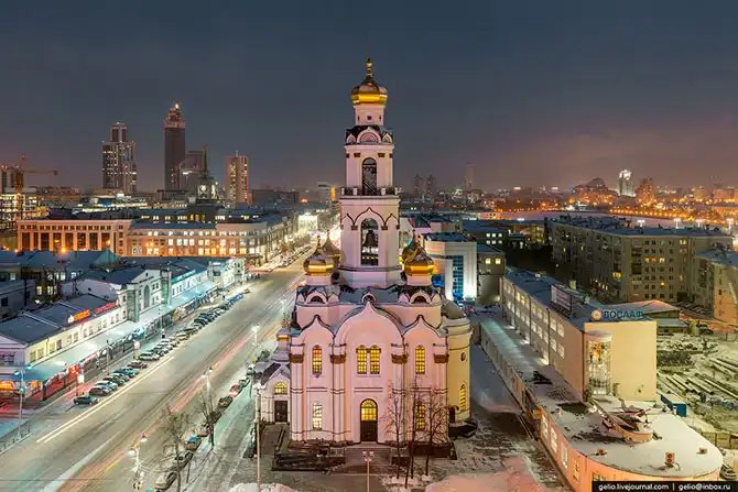 Построен на месте расстрела царской семьи Романовых.