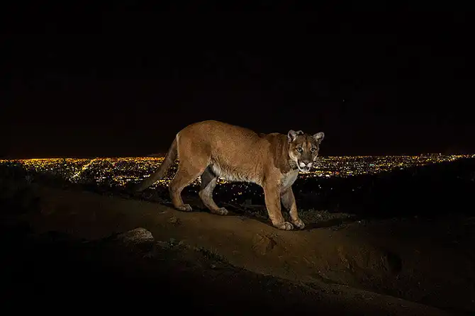 2 марта 2013 года, Лос-Анджелес, США. Фотография кугуара в парке Гриффит, сделанная на замаскированную камеру. Чтобы попасть в парк, где последние два года обитают кугуары, нужно перейти два самых оживленных в США шоссе.