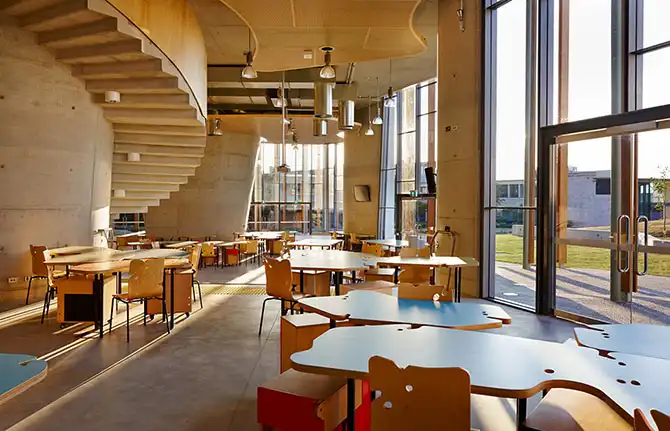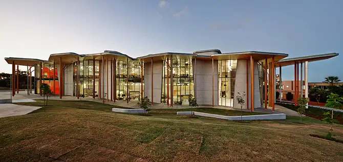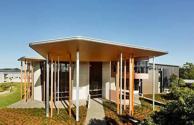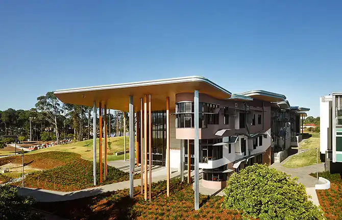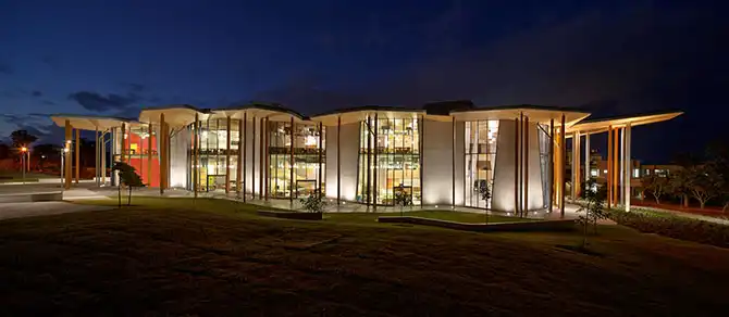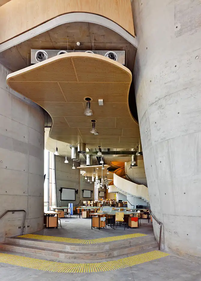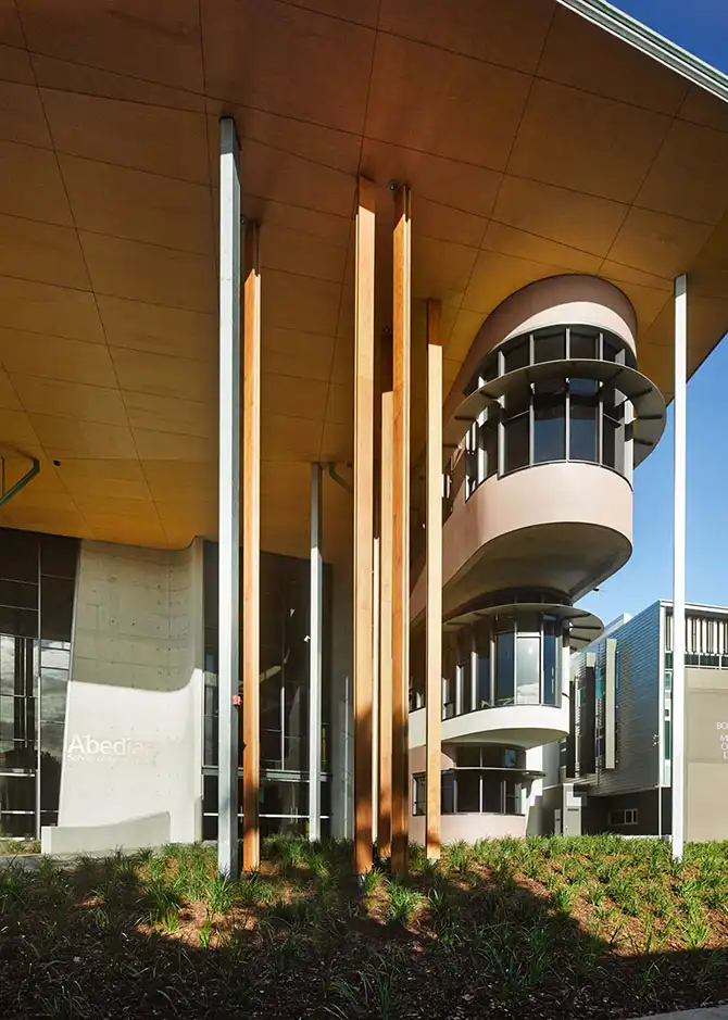 Школа архитектуры имени Сохайла Абедьяна при Университете Бонд расположена в городе Квинсленд, Австралия. Ее проект реализован архитектурным бюро CRAB Studio. Вытянутое здание площадью 2,500 кв. метров представлено несколькими двух- и трехуровневыми блоками из стекла и бетона.