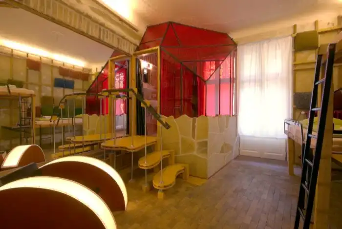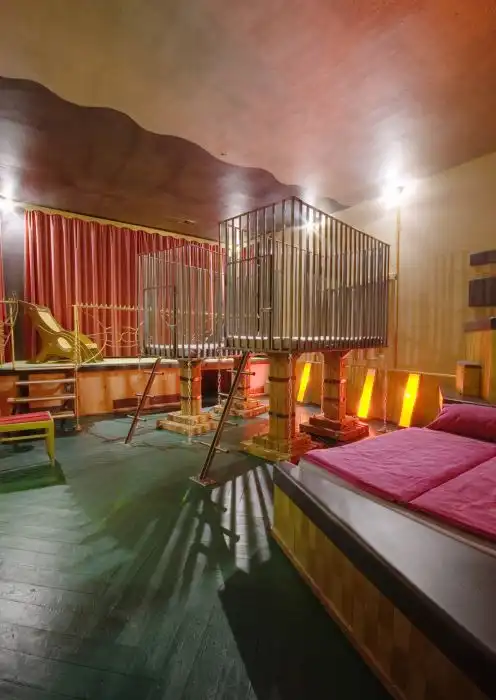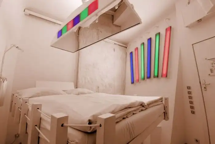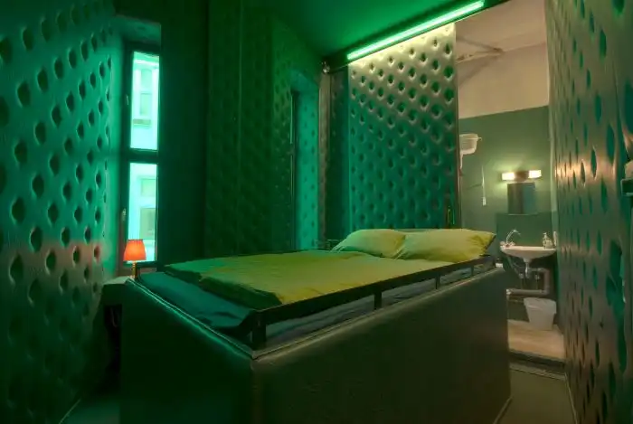Propeller Island City Lodge - необычный отель в Германии, в Берлине, где все номера в этом отеле отличаются друг от друга. Отель завоевал большую популярность среди туристов и, даже, среди местных жителей. Каждый постоялец получает руководство, в котором четко описывается, как необходимо пользоваться своей комнатой. Например, одна из комнат полностью покрыта зеркалами, в другой пол расположен под наклоном, а третья вообще оформлена под тюремную камеру. Если вам вы любитель острых ощущений, то отель Propeller Island City Lodge - это то, что вам нужно.
