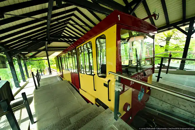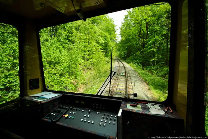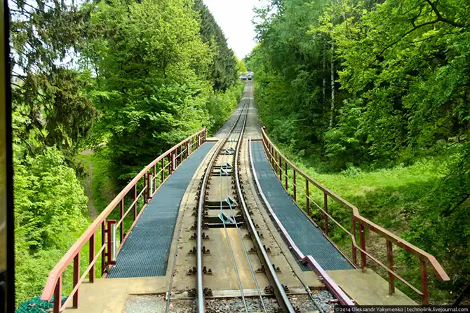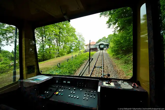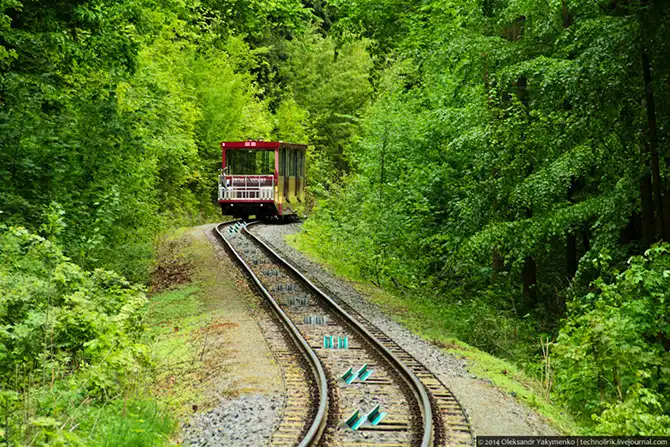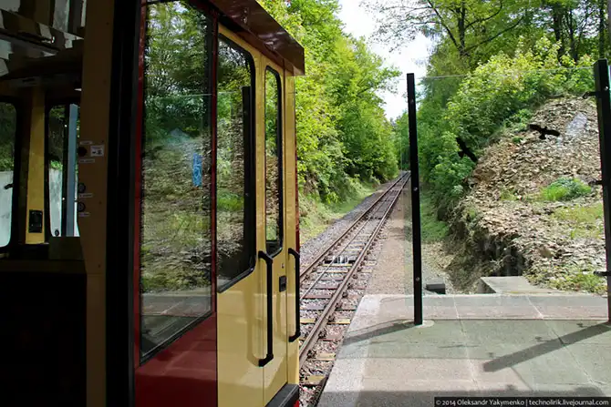 В один момент я свернул с лесных дорожек и взобрался на железнодорожную насыпь, где стал ждать, когда из-за угла покажется вагончик фуникулера. Ждать пришлось не долго.