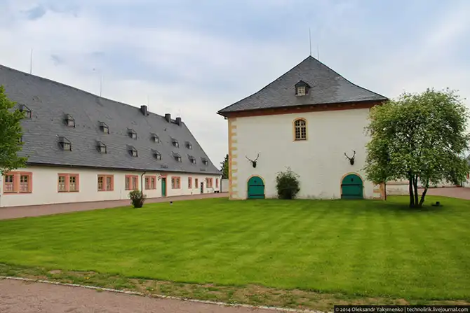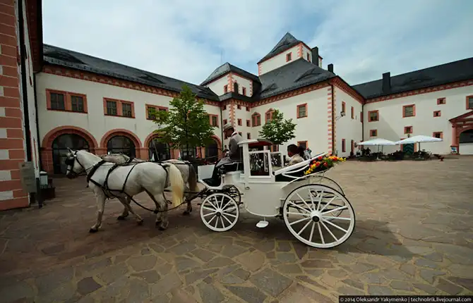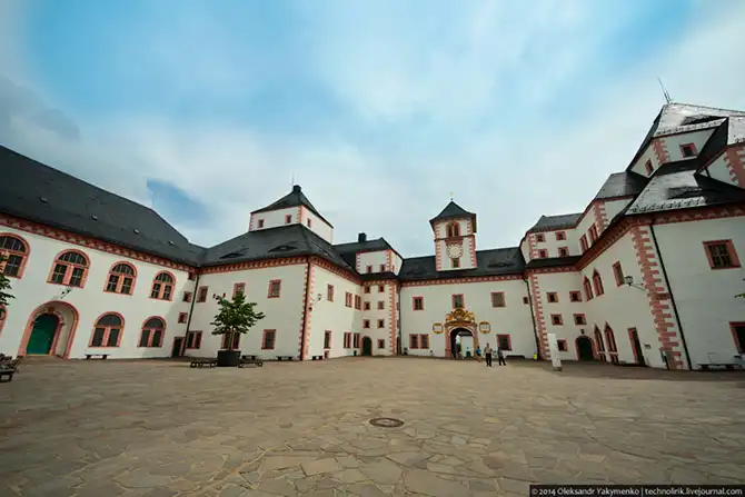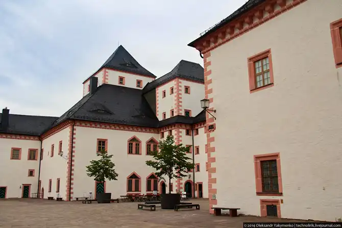Внутренний двор. Обратите внимание на то, как мало внутри людей. Вероятно, на выходных тут побольше туристов, но вообще эти места слабо известные за пределами Саксонии. Международный турист тут редкий гость.