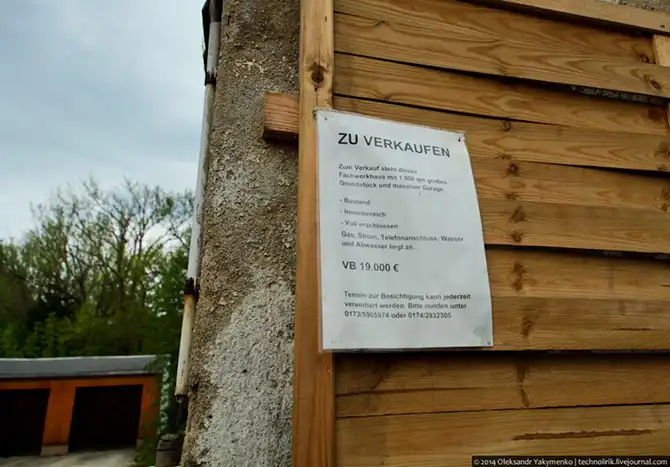 Этот дом выставлен на продажу. Видно, что ему требуется капитальный ремонт, поэтому и цену за него просят очень скромную – 19 000 евро, включая участок, площадью 1000 квадратных метров и гараж.
