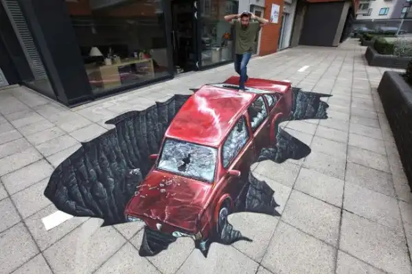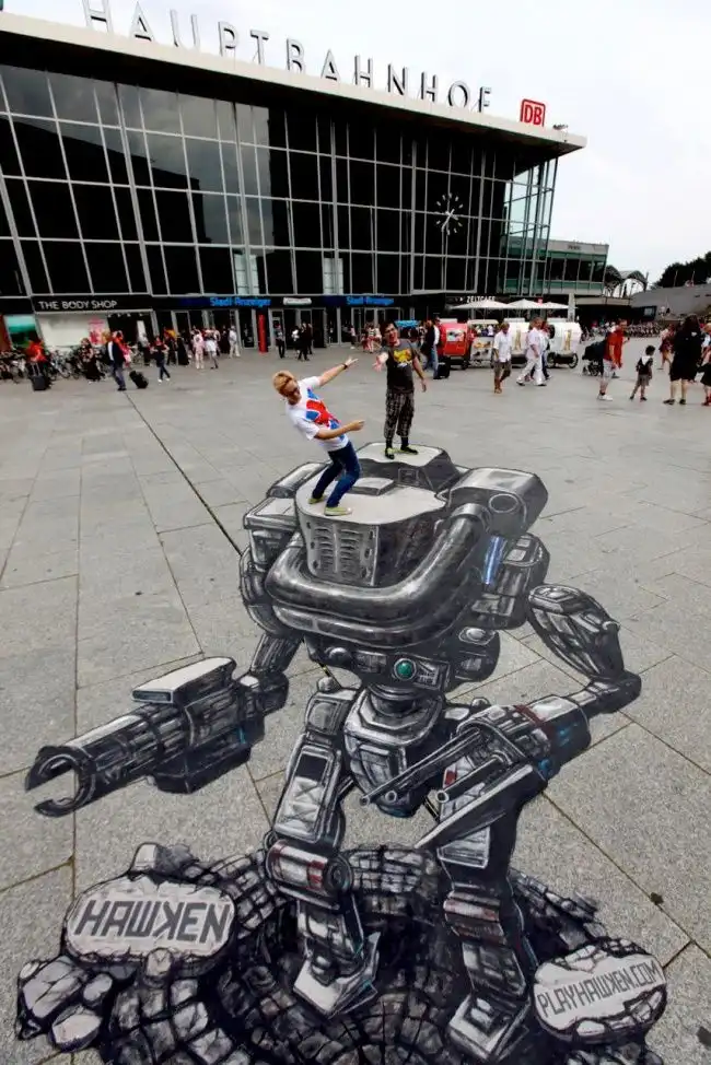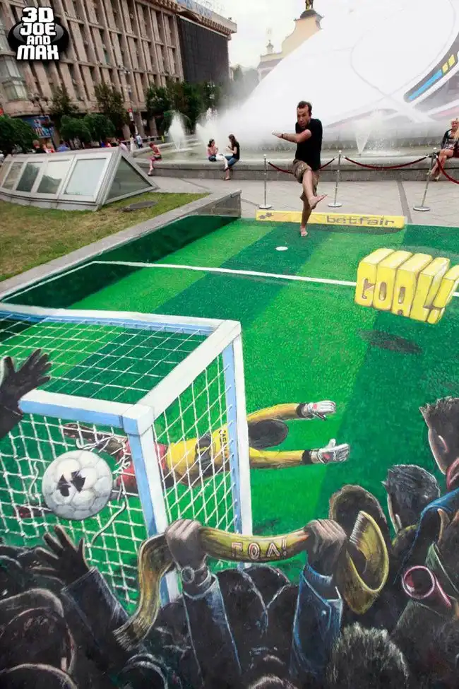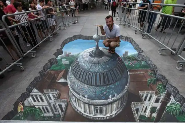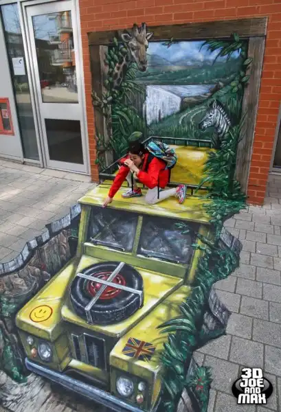 Тротуарные художники Джо Хилл и Макс Лоури вот уже 10 лет путешествуют по разным городам мира и рисуют впечатляющие трехмерные изображения как для себя так и для популярных брендов. Интересной особенностью их работ является то, что художники создавали свои рисунки с помощью случайных прохожих и любой желающий мог стать персонажем удивительных работ.