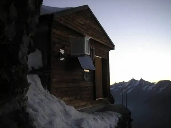 Многие из нас мечтают о небольшом домике в диком, труднодоступном месте с прекрасными видами. Например, в горах. Каждый хоть раз в жизни видел знаменитую гору Маттерхорн, если не в живую, то на эмблеме шоколада «Toblerone». Именно в этом уникальном месте, на высоте 4000м над уровнем моря, и располагается маленький и уютный домик. Он был построен в 1915 году, а затем в 1976 году подвергся реконструкции и был оснащен телефоном. Хижина принадлежит швейцарскому альпийскому клубу и используется для обеспечения альпинистов продовольствием и кровом перед финальным броском на вершину. Находится она именно на северо-восточном гребне горы Маттерхорн, так как северный гребень – наиболее трудный для прохождения маршрут.
