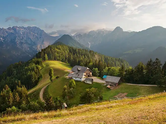 Алеш Умэк проехал на велосипеде 90 километров, чтобы запечатлеть чудесные пейзажи долины Логар в Словении. «Я мечтал сделать волшебный снимок», — объясняет он. На вершине одного холма Умэк запечатлел несколько домиков, как будто попавших сюда из сказки. © Алеш Умэк
