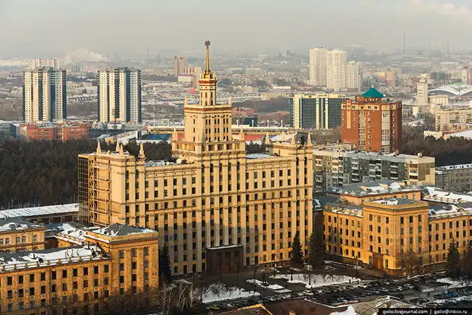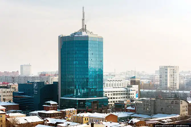 Это самое высокое здание Челябинска. Высота со шпилем составляет 111 метров.