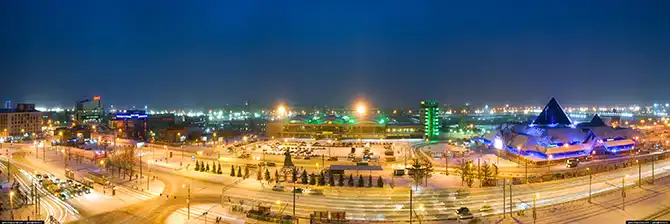 Торговый центр. Внутри здания нет колонн, поддерживающих оболочку, а углы, на которые опирается купол, размещены на специальных катках и могут двигаться. Конструкция является сборной и может «дышать», опускаясь или поднимаясь в зависимости от перепадов температуры.