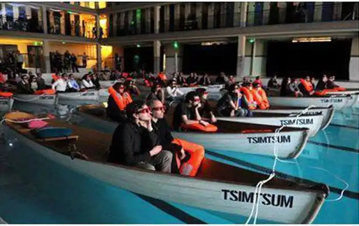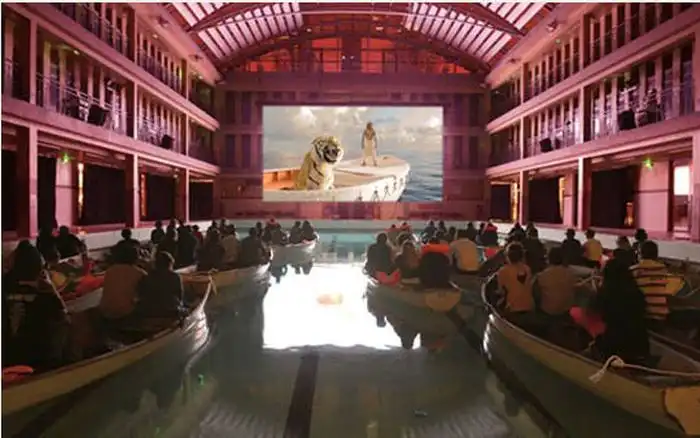 Пожалуй, это один из самых гениальных способов создать кинотеатр следующего поколения, в котором зрители действительно почувствуют себя участниками событий, происходящих на экране. Таким образом был организован просмотр кинофильма "Жизнь Пи 3D", по сюжетной линии которого корабль терпит крушение и маленький мальчик по имени Пи остается один на один с бенгальским тигром в шлюпке.