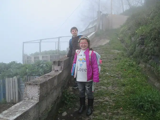 А вот и детишки, живущие в Монте, возвращаются из школы. Маленькие ежики в тумане.