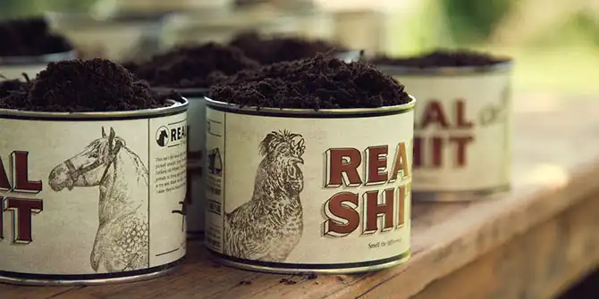 Компания, изготавливающая товар под маркой Real shit, не только открыто заявляет о том, что торгует навозом, но еще и гордится этим. Real Shit продается в герметичных банках, которые сохраняют все свойства свежего навоза.
