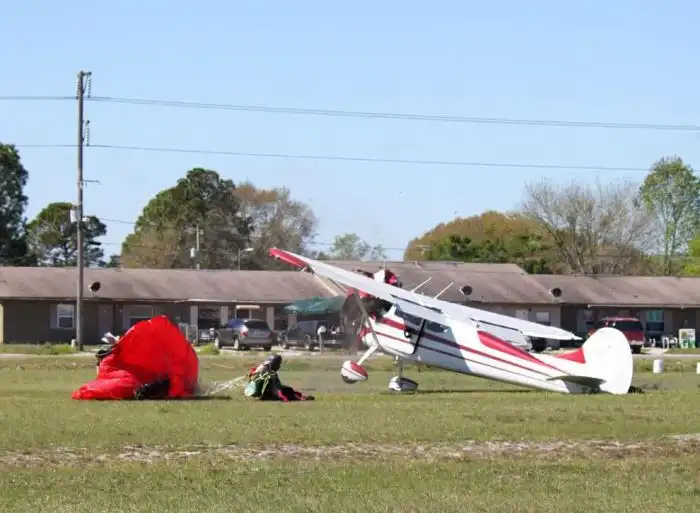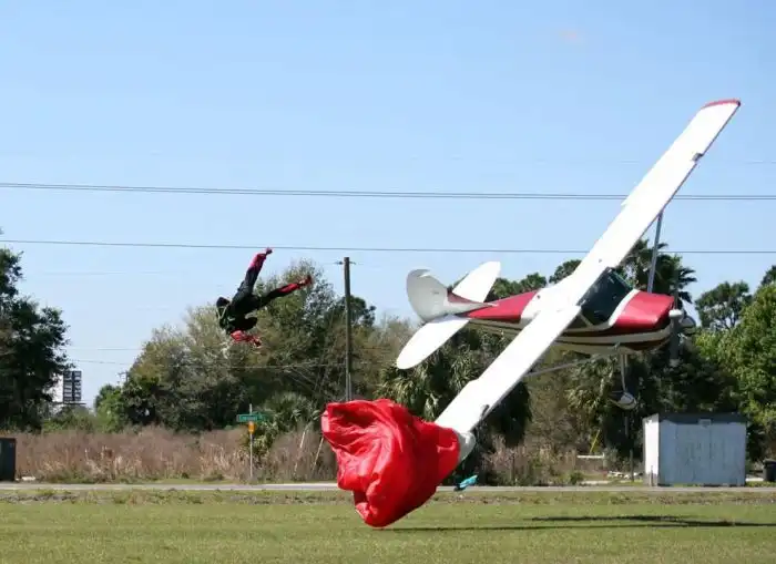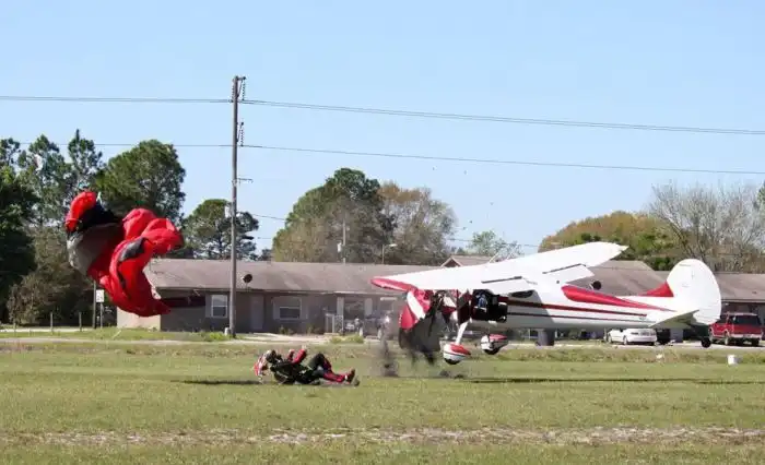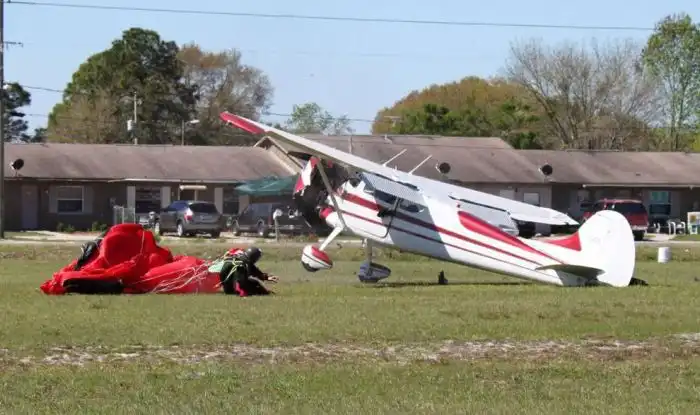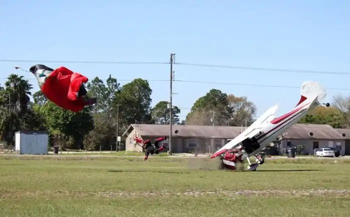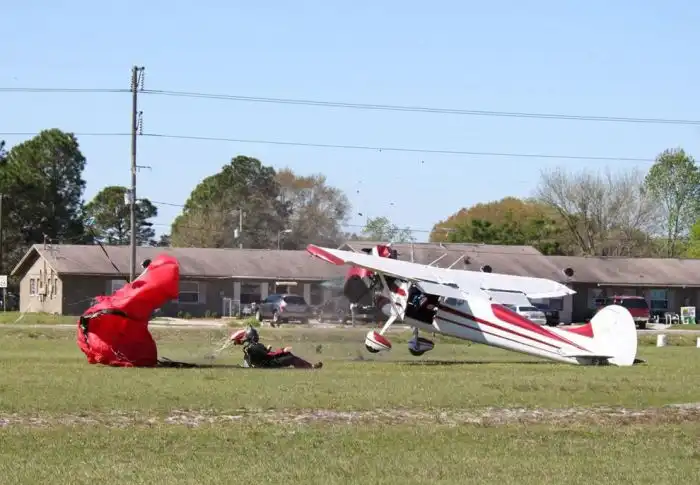 Очень необычное происшествие случилось в аэропорту Южный Лейкленд недалеко от города Тампа. 87-летний пилот небольшого самолета не справился с управлением во время посадки и в прямом смысле слова "подрезал" парашютные стропы парашютисту, оказавшемуся на его пути. Хоть последствия такого необычного воздушного столкновения были весьма плачевными, к счастью, ни пилот, ни парашютист не получили серьезных ранений.