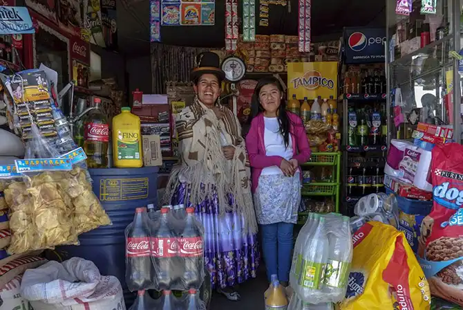 Боливийке Люси Мейта, 43 года, а ее дочери Луз Сесилии – 12. Фото сделано в их небольшом магазинчике в Ла-Пасе. Они живут в задней комнате своего магазинчика. У мамы четыре класса образования и этого достаточно для работы в магазине. Дочь уже в седьмом и мечтает стать певицей.