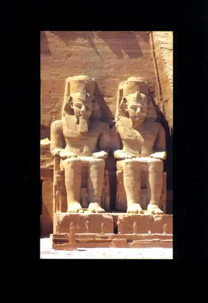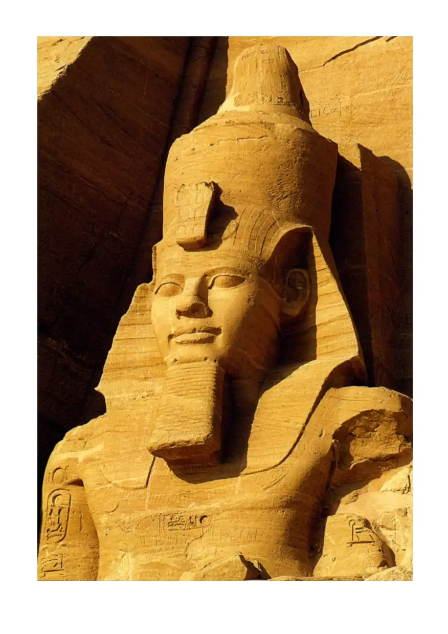 Абу-Симбел. XIII в. до н.э. Храм целиком высечен в скале. Посвящён богам-покровителям крупнейших египетских городов – Амону (Фивы), Птаху (Мемфис) и Ра-Горахти (Гелиополь), но на самом деле построен во славу Рамсеса II. Фасад высотой 33 метра с четырьмя огромными статуями Рамсеса II, сидящего на троне в двойной короне Верхнего и Нижнего Египта, был призван поражать публику и прославлять этого тщеславного фараона.