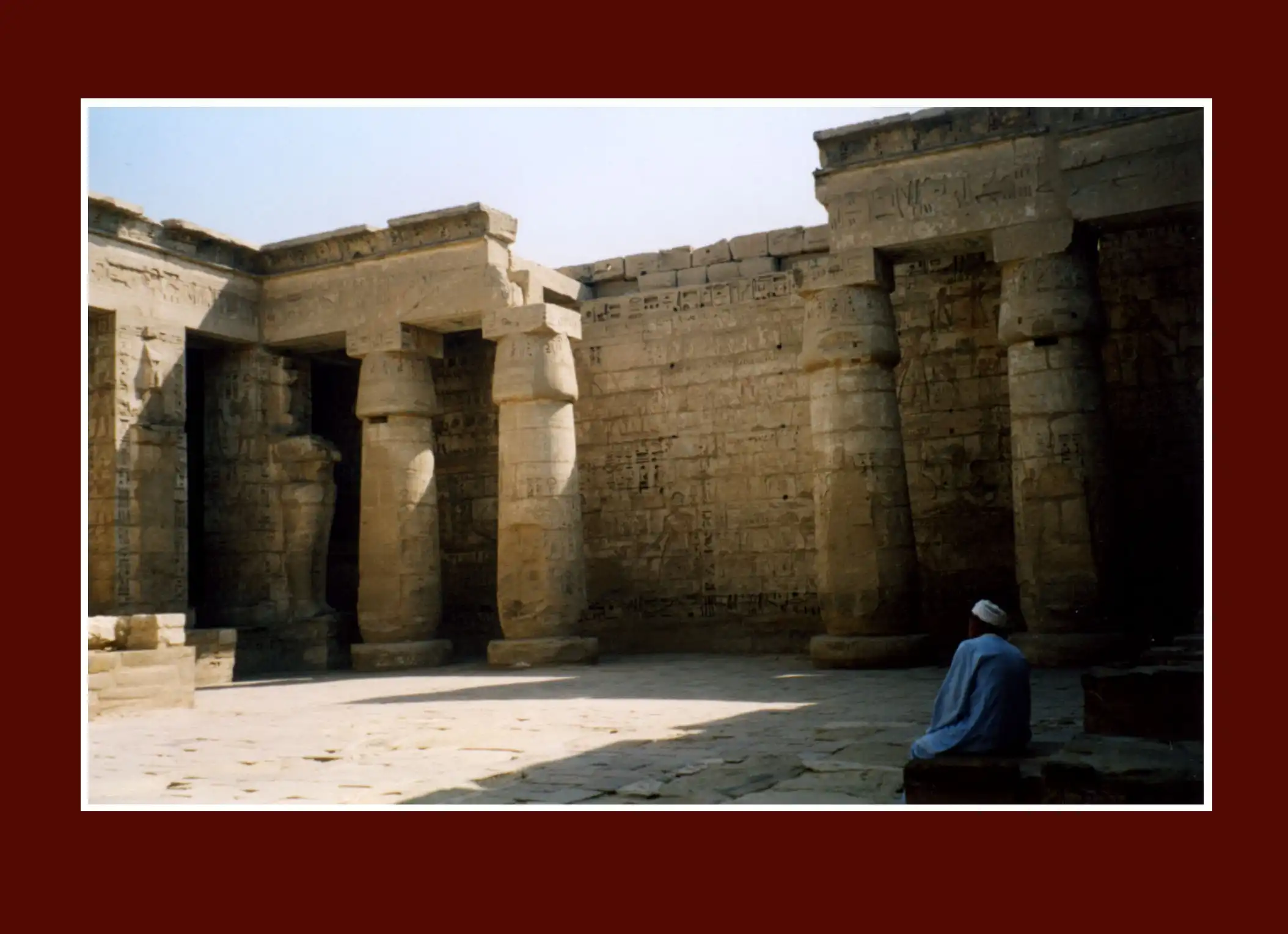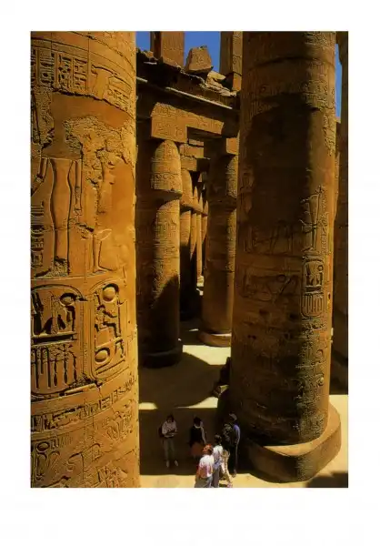 Никакие фотографии в путеводителях не вызовут тех чувств, которые испытываешь, бродя между гигантских, но в то же время легких и празднично расписанных колонн, вдоль стен, тысячи и тысячи квадратных метров которых покрыты вырезанными письменами и древними, но живыми в своей своеобразной реалистичности картинами. Все абсолютно соразмерено. Стиль уникален. Прекрасное во всем его величии, торжественности и странности.