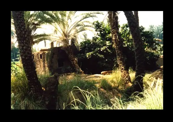 Следующая фотка вообще ничего из себя не представляет, кроме напоминания о том, что долина Нила, приютившая одну из древнейших цивилизаций – всего лишь узкая полоска затопляемых Нилом земель, зажатая между рекой и пустыней. И ещё – вопиющая бедность и неприхотливость сельского населения, веками жившего и продолжающего жить вот в таких тростниковых мазанках.
