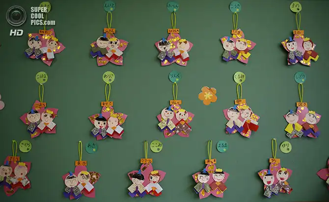 Бумажные куклы, сделанные детьми в детском саду «Эмпориум» накануне праздника «Хинамацури».