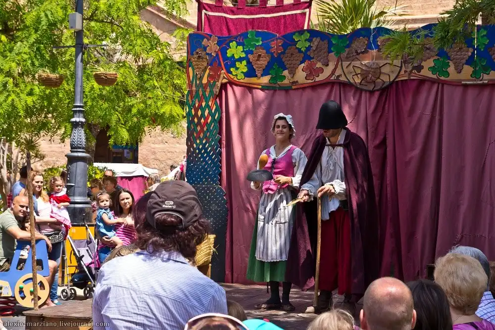 На несколько дней главная площадь и улица старого города выпадет из современности и переносит своих гостей на несколько веков назад. В этом году городок Торревьеха тоже присоединился к традиции. Улица Caballero de Rodas вместе с площадью Конституции превратилась в гастрономическую зону с сырами, приготовленными по старинным рецептам, колбасами, медом и травами, традиционными сладостями, хлебом, выпеченным прямо в печке на дровах. Кроме хлеба, конечно, там были и зрелища.