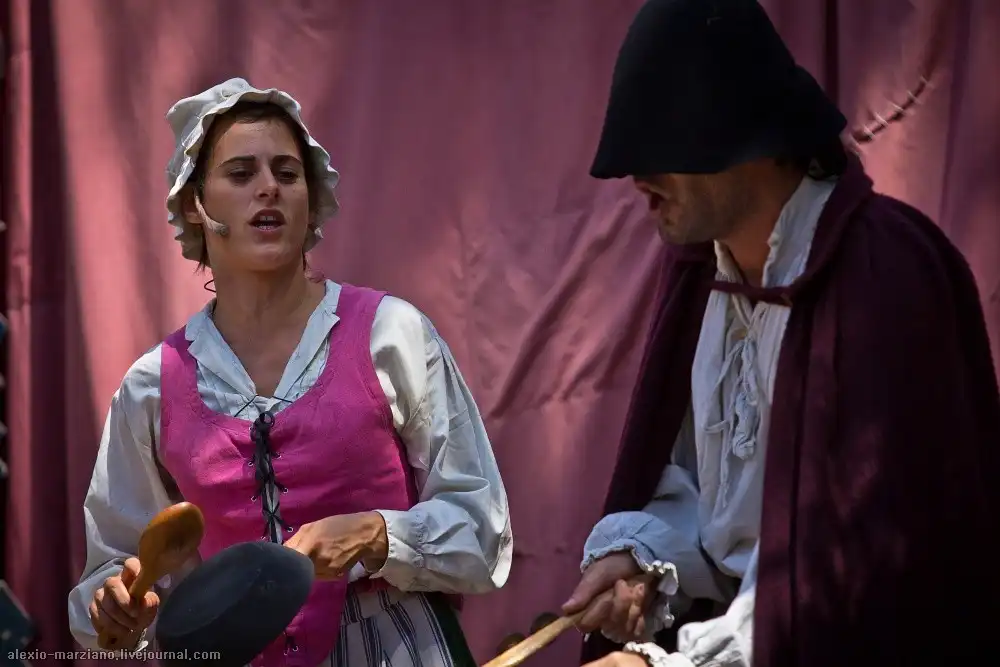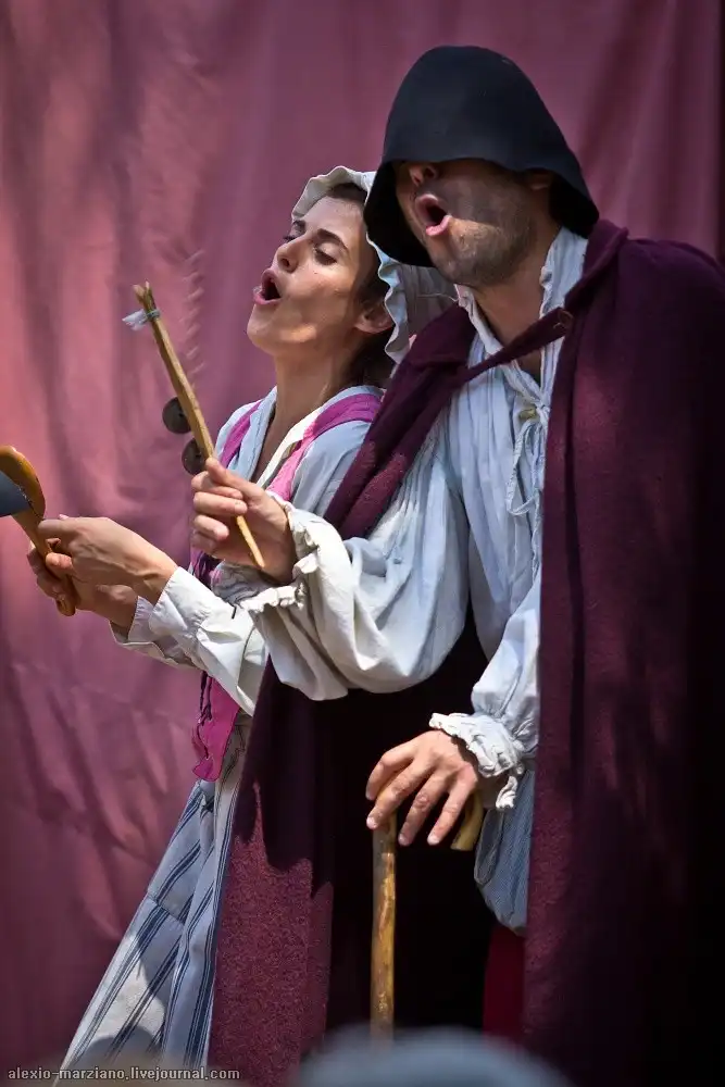 Кроме уличного театра, посетителей рынка развлекали многочисленные жонглеры, акробаты, музыканты и фехтовальщики.