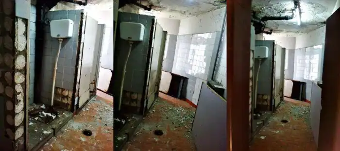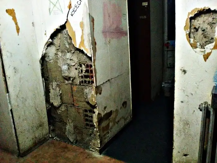 Ванная. Что-то не выдержало и потолок упал. Хорошо, что никого не было в ванной.