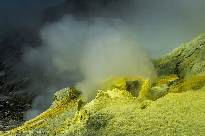 Раньше на острове добывали серу. Производство свернули после трагедии в 1914 году: вулкан проснулся и уничтожил во время извержения большую часть заводских построек: